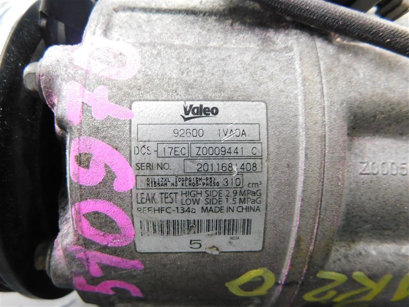 Компрессор кондиционера Nissan Serena C26,NC26,FC26,FNC26,HFC26 MR20DD 92600-1VA0A, 92600-1VA0C, 92600-1VA1A, 92600-1VA1B, 926001-VA1C, 92600-1VA1D